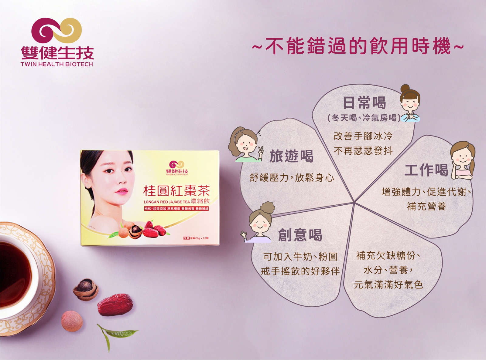 添加枸杞、紅棗,溫潤回甘、清香順口;由內而外打底氣色,安定心神,舒緩壓力幫助入睡。