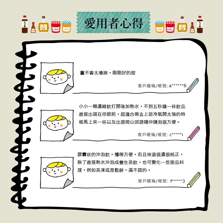 - 過敏原醒語:本產品含有亞硫酸鹽類、含麩質穀物之製品,不適合對其過敏體質者食用。